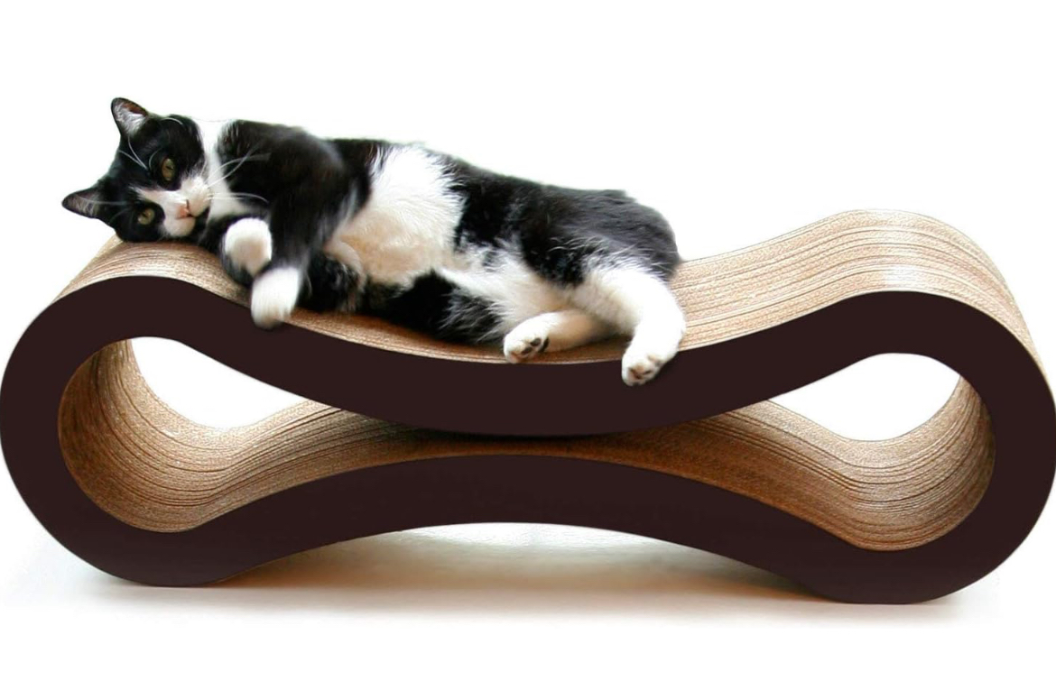 ◦ 설명: 골판지 소재의 곡선형 스크래처 겸 라운지. 내구성과 디자인으로 인기.